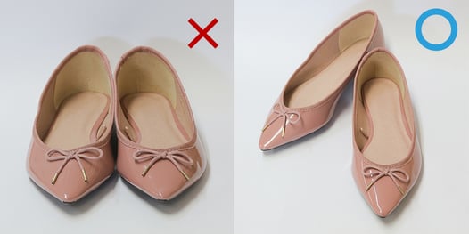 2つ目のコツは靴や指輪など、正面から同じ目線で見ても形のわかりにくい商品は例外的に角度を変えて撮影しましょう。