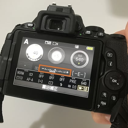 露出補正の方法はカメラによって異なりますが、たいてい上記のような画面が表示されています。