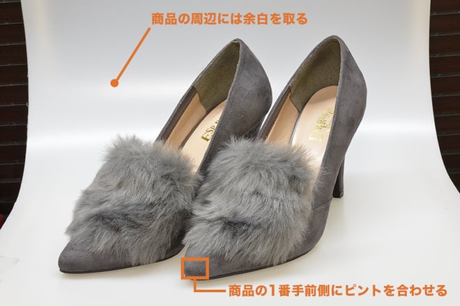 2つ目のポイントはピントは商品の1番手前側に合わせることです。