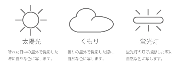 ホワイトバランスでは上記の画像のようにそれぞれのアイコン毎にホワイトバランスが振り分けられています。