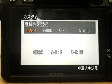 あとはホワイトバランスの設定を、登録したカスタムホワイトバランスに設定すれば完了です。