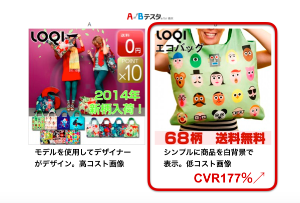 下の画像はABテスタ for 楽天市場さんが2枚の商品画像どちらが売れるかをABテストをした結果です。