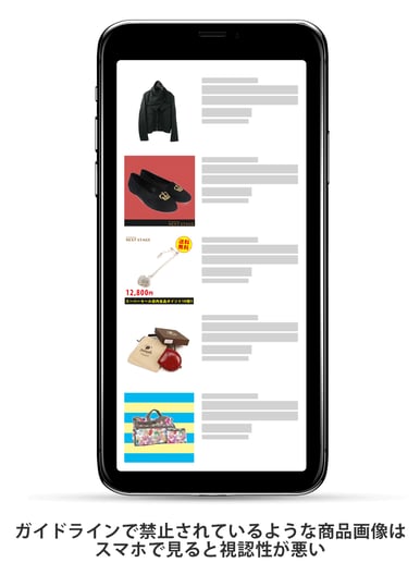 ガイドラインで禁止されている「画像の中にたくさん文字が入っている画像」や「背景が白ではないような画像」はとても見づらくなります。