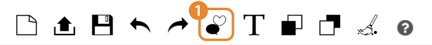 ❶ハートと吹き出しのアイコンがスタンプの追加です。