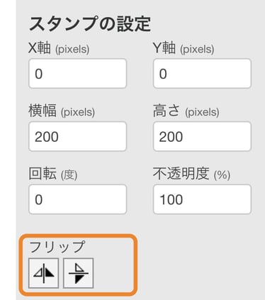 スタンプの設定にあるX軸とY軸を入力する事で、スタンプの位置を数値で指定する事ができます。