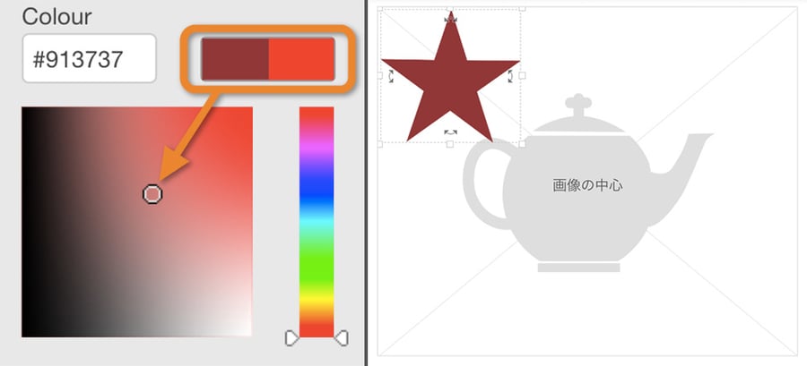 ティーポットの画像が、切り抜く画像の位置を表しています。