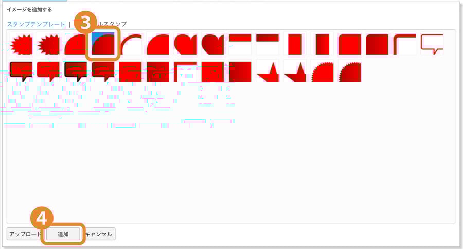 スタンプの追加アイコンをクリックすると、テンプレートにスタンプを追加する事ができます。